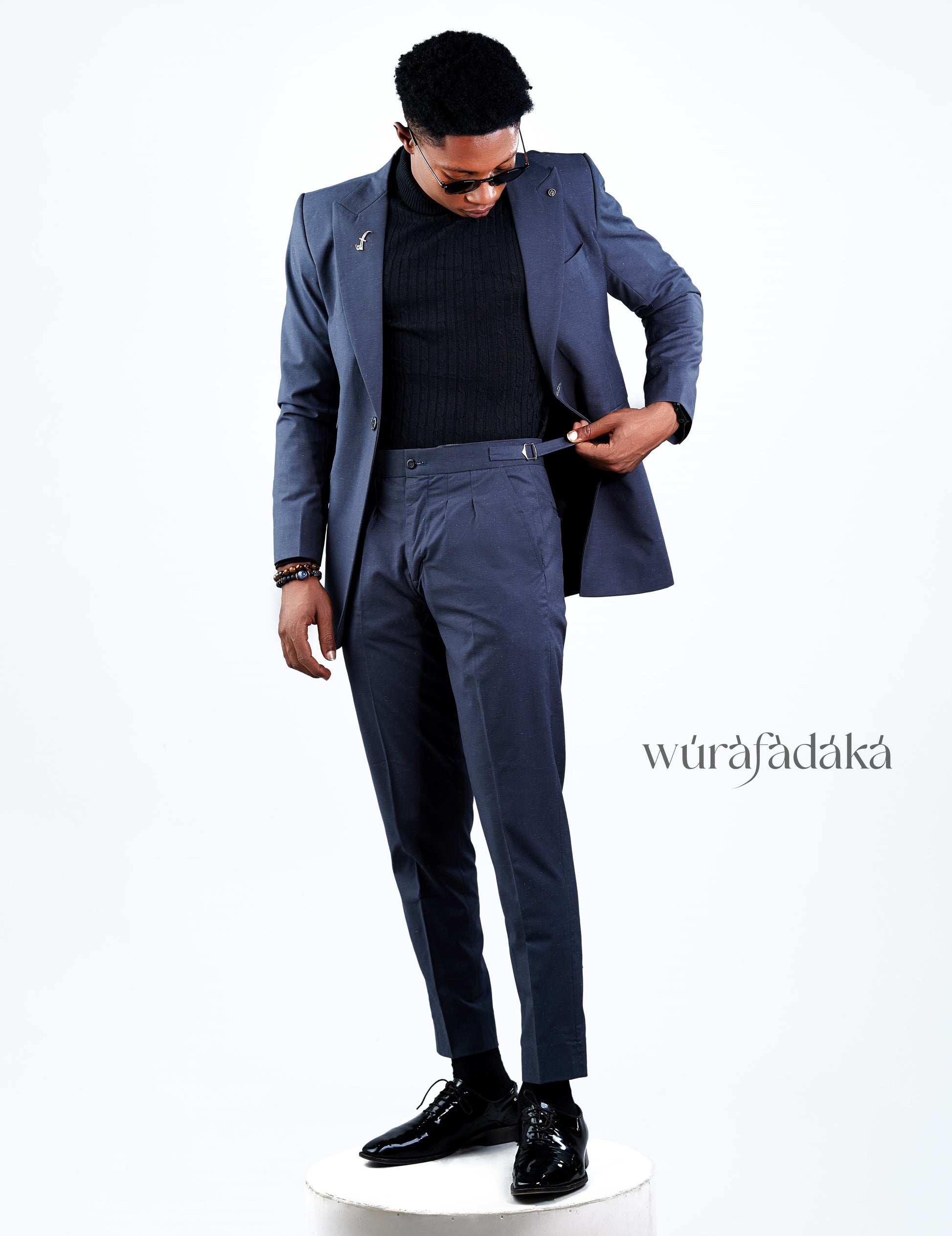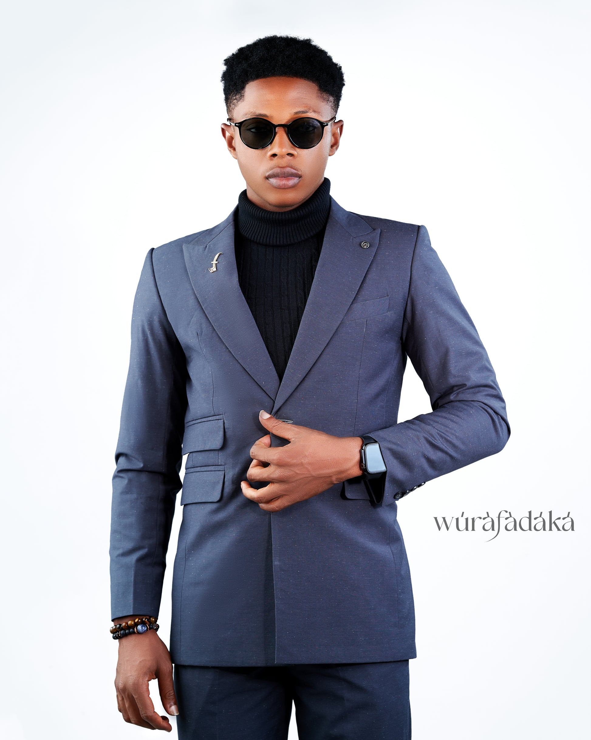 The Fedrick Suit is a stylish and versatile two-piece single button suit designed for the modern man. The suit features a deep grey color and a peak lapel, giving it a sophisticated and elegant appearance.This suit is perfect for those who want to look sharp and put-together while maintaining comfort and ease of wear.