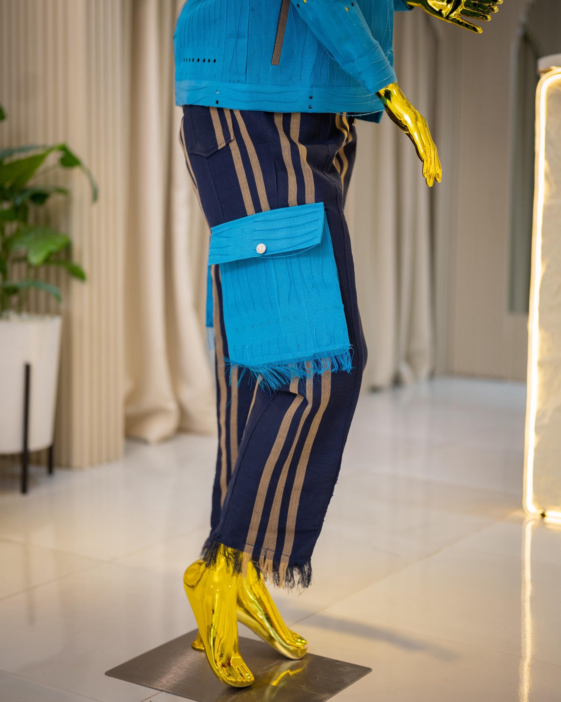Option 2 - Turquoise Blue Jacket + Striped Navy Blue Combat Pant